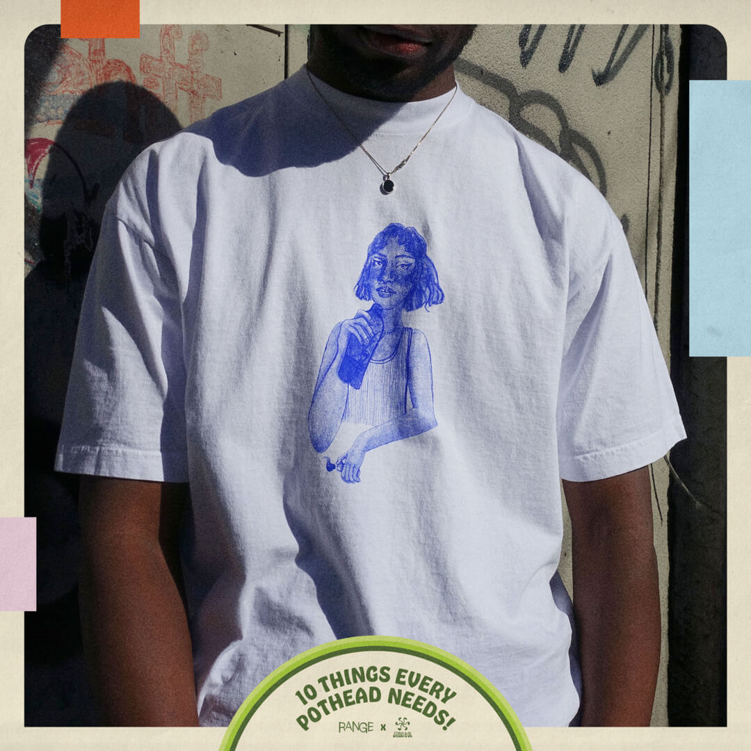 Named after our friend Lucy Kinsella who designed it, this is the Lucy Tee. Stoners need to look good too, just make sure you wipe the Cheezies dust off your fingers before you grab it from the closet.
