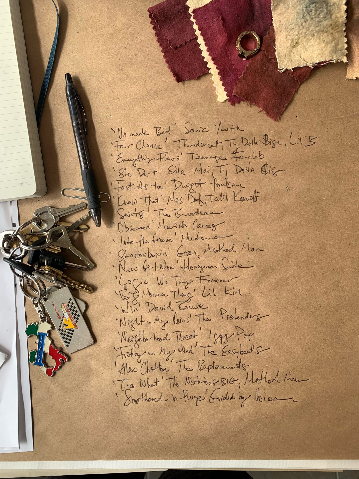 I’m lucky enough to have a great in-house DJ, Ryguy. He’s usually on it, we have a decent collection of vinyl. If I look at what’s circulating at the moment, it’s Dusty In Memphis, Lil Kim, Dottie West, Emmylou, Genius/GZA, Guided By Voices and a couple Sonic Youth records.
