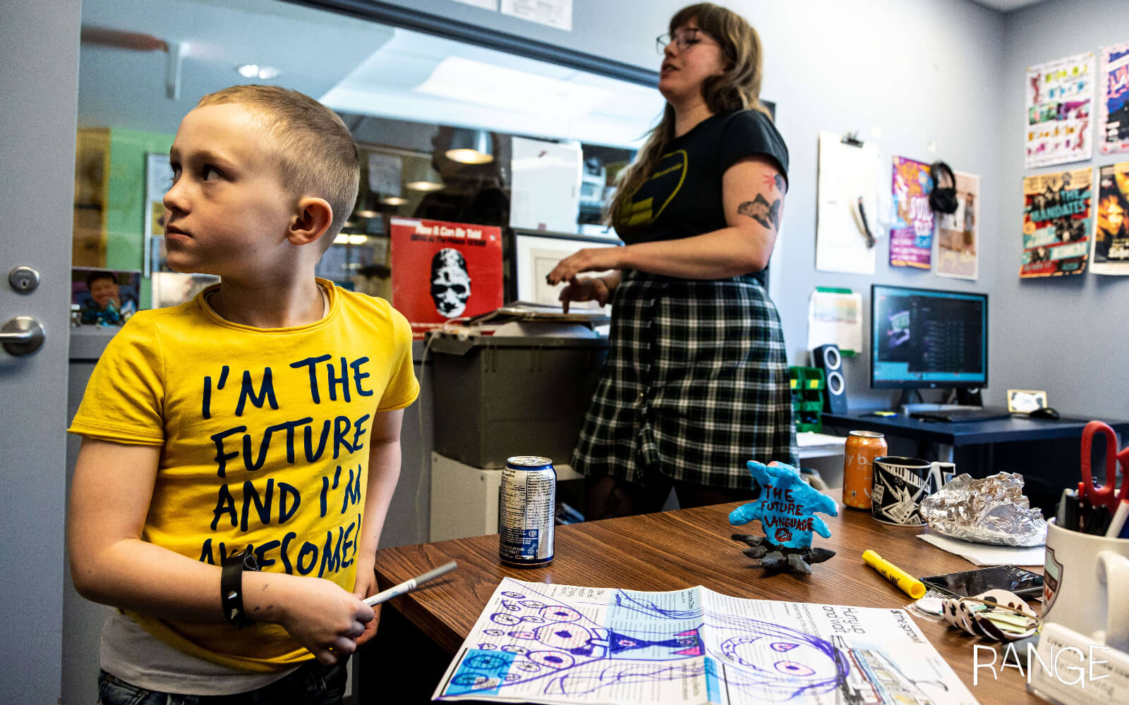 With four claps of a snare drum, a chaotic mosh pit breaks out, and at the centre of it all is four-foot two Robbie wearing industrial grade hearing protection and a shirt that reads “Pull My Finger” written in sharpie. A heavy wave of people thrash back and forth in the mosh pit while the young vocalist ferociously shouts his self-written lyrics into the microphone. To the untrained eye it looks like utter madness, but for many in the Calgary punk scene this is a show they wouldn’t miss. And for Robbie, it’s just another Friday night — kind of.