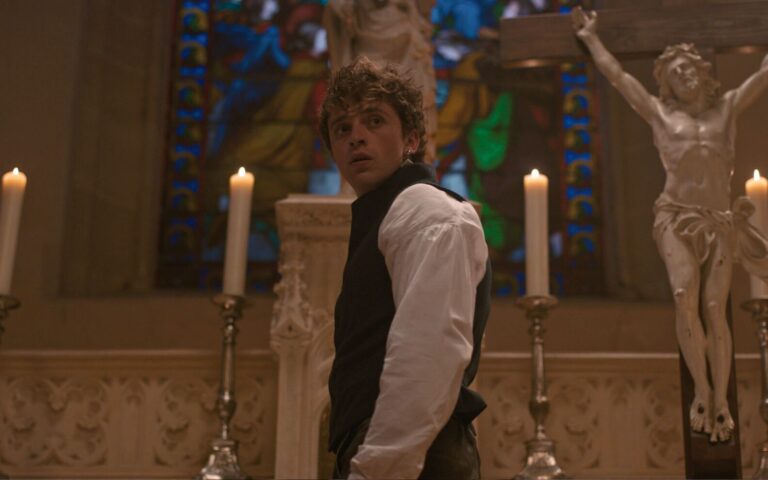 Part of Carême’s charm comes from the show’s artistic and idiosyncratic style, overseen by Bourboulon, who directed the first three episodes and acted as the series’s showrunner and artistic producer. Shot on location in France inside and outside many extravagant historical landmarks, including the Palais Garnier, Pavillon de l’Aurore, and Château de Champs-sur-Marne, Carême has a chic, anachronistic vibe. With his stylish pea coats, loose-fitting shirts, colourful scarf belts, wild rebel curls, and single pirate earring, the character of Carême looks like less of a chef and more of a rockstar about to play a set at Glastonbury circa 1970.