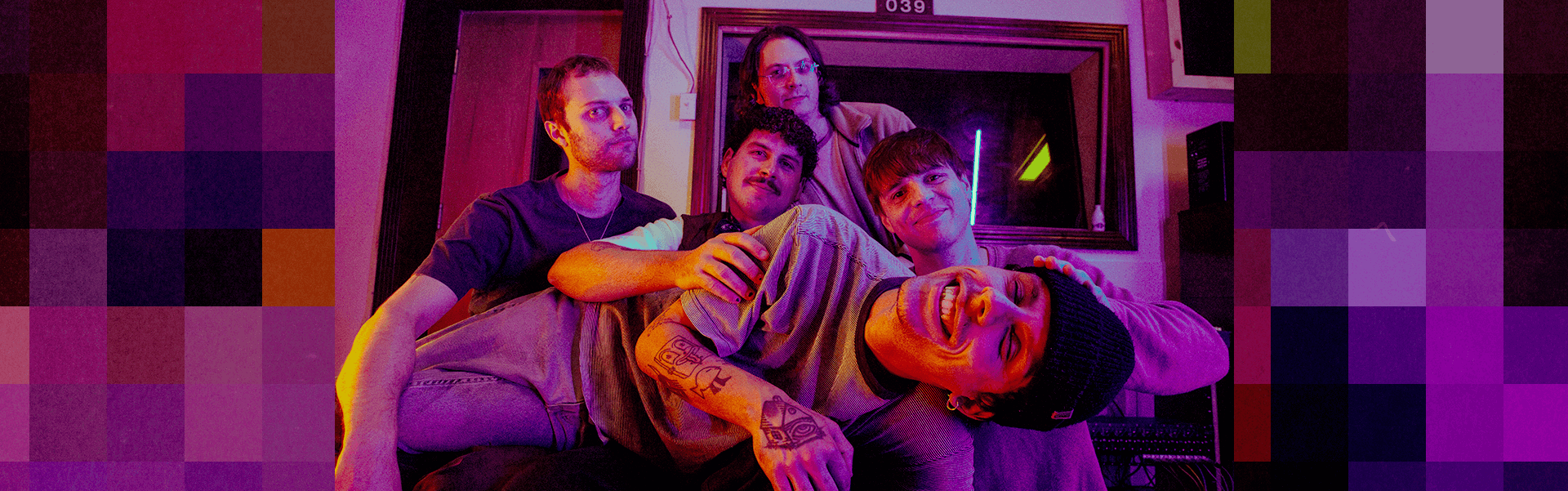 “Pression,” which translates to “pressure” in English, is a funky techno-adjacent tune about anxiety and feeling the weight of the world on your shoulders. But what is the band feeling pressure from, and is it the same as when it all began 10 years ago? “The first single was back in 2013, when we were barely able to play our instruments,” says drummer Philippe Gauthier-Boudreau. “So I don’t think we were feeling any pressure back then, or even thinking about things like a label or reception.”