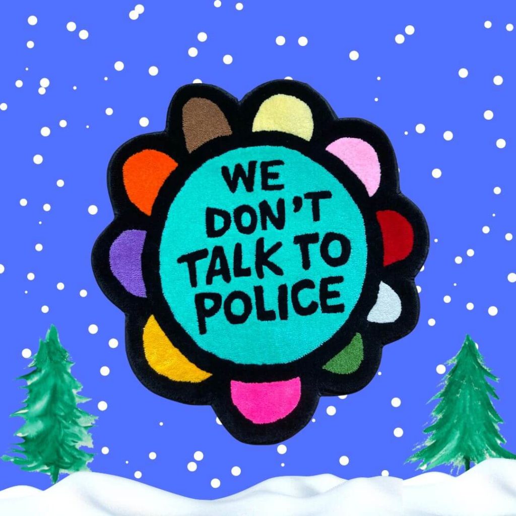 Support your local rug dealer and make every Christmas an ACAB Christmas with Montreal artist Cordy’s colourful floor art. Previous clients include Meek Mill, Bia, and Melody Thornton of the Pussycat Dolls. On a budget? Check out her mini rugs that pack just as much anti-authoritarian heat. Follow Cordy on Instagram at @idorugsnow