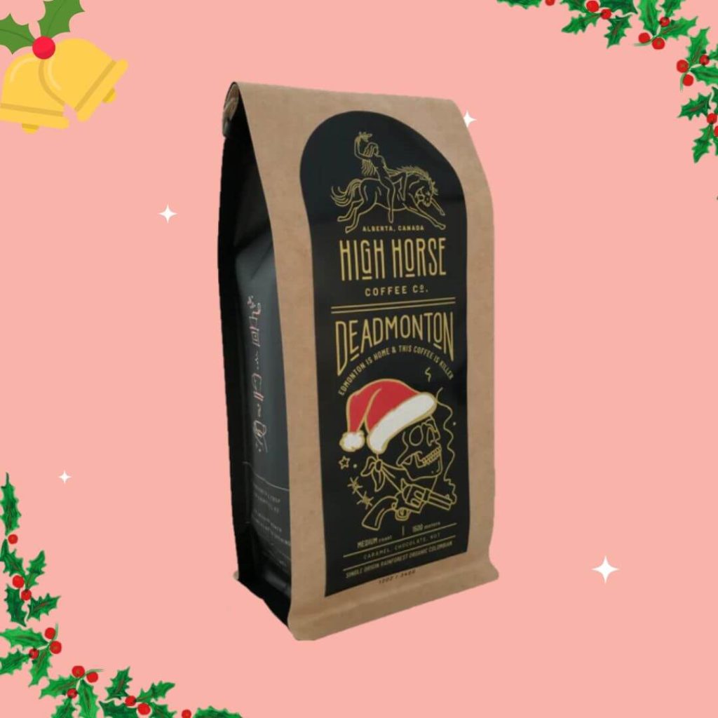 With hints of caramel, chocolate and nuts, High Horse Coffee’s classic Colombian roast, Deadmonton, is all dressed up for the holidays. If you like to smile, because smiling is your favourite or if you’ve ever shot your eye out with your Christmas gift, this coffee is for you. Spend the holidays relaxing and drinking your favourite organic medium roast by the tree.
