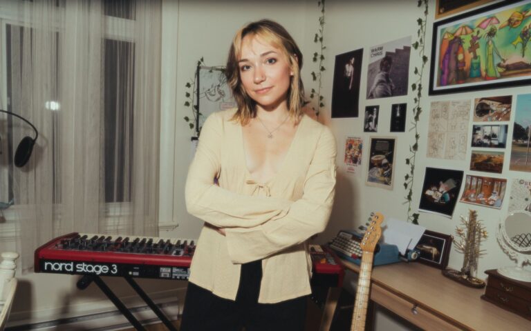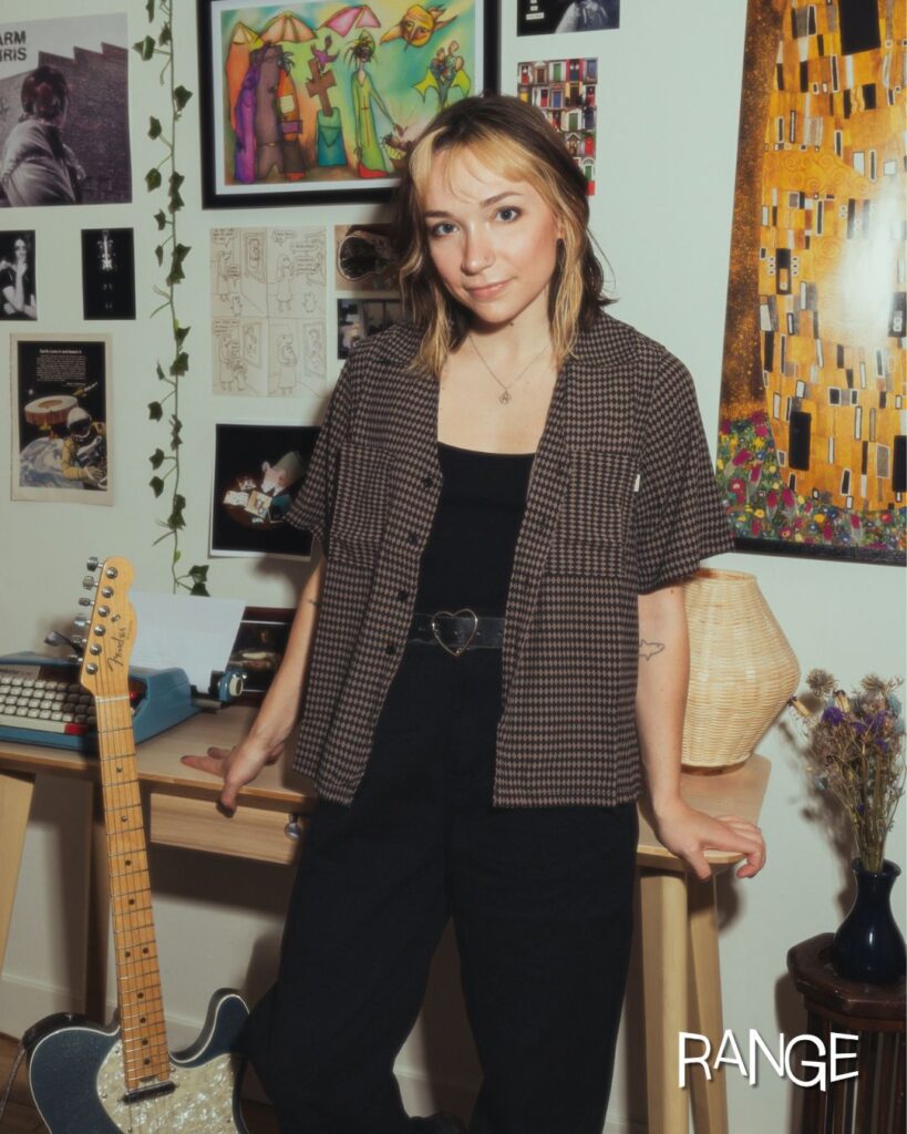 A musician’s jam space is more than just a room; it’s a sanctuary where creativity flows freely, ideas are born, and musical instincts are sharpened. It’s a place for connection with something greater than notes and chords. For Ruby McKinnon, better known in the music world as the moody indie artist Flower Face, her jam space is this and more. It’s a haven and (quite literally) her humble abode. Within half of the double room in her quaint Montreal mid-century apartment—long hallways, high ceilings, squeaky floors—she keeps her jam space tidy and low-lit with a warm hue, sometimes hopping between her light, baby blue Telecaster, Nord keyboard, or the microphone attached to her desk.
