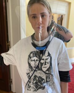Maria Bakalova as Bee wearing an Andrea Lukic designed t-shirt (Bodies, Bodies, Bodies)