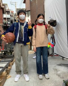 Seung Min Yim as Young Hae Sung and Seung Ah Moon as Young Nora (Past Lives)