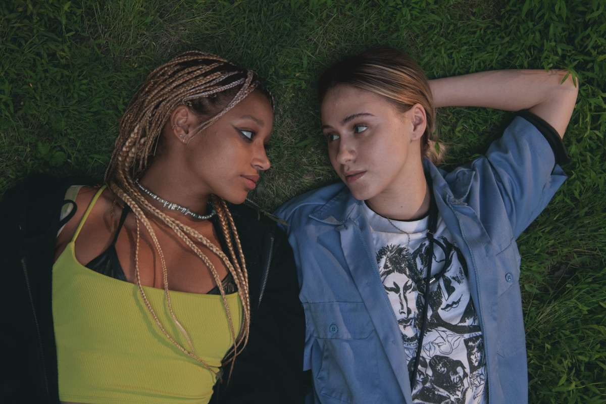 Sophie’s new girlfriend, Bee (Maria Bakalova), is the outsider of the group. She’s from Eastern Europe and works at a Game Hut in a mall. She dons a shirt done by Vancouver-based multidisciplinary artist Andrea Lukic. “[She] makes zines and comics and she’s just fucking cool,” Danabassis says. “I felt very grateful that she would want to let me use her work.”