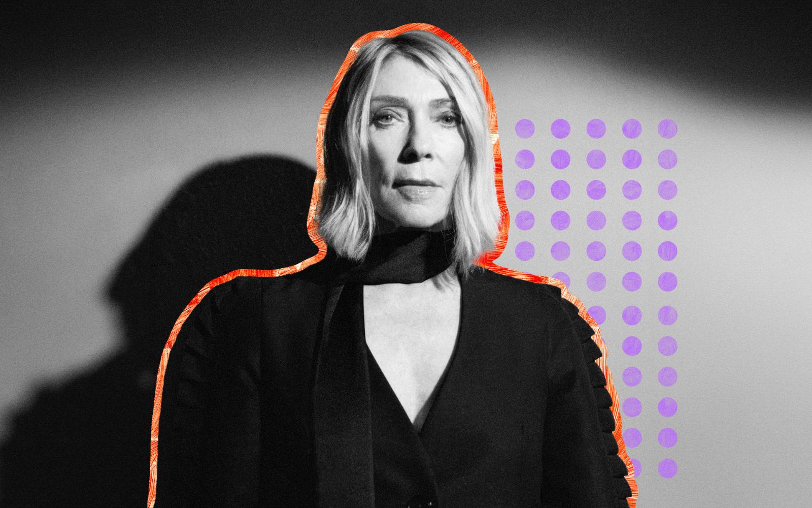 Materializing in a tiny corner of our Zoom call, I spot the legendary Kim Gordon surrounded by eggshell walls, barren except for a solitary unhung painting of an alien in a pink wig that has been crossed out in screeching neon green paint. Sage and serene, Gordon settles by a sunlit window in her California home, shucking off an emerald shacket and sipping lightly at her tea. Roughly 1,500 miles away, her presence still charges the air, her inimitable cool effortlessly demanding greatness.