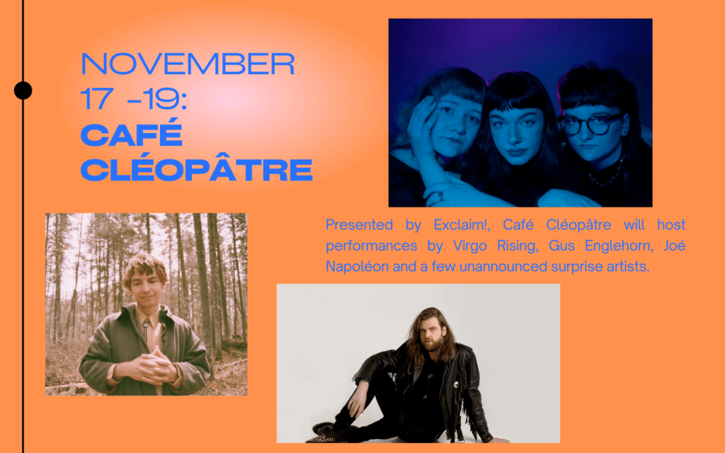 A strip club/live music hybrid, Café Cléopâtre will host clothes-on performances by artists including Virgo Rising, Gus Englehorn, Joé Napoléon and a few unannounced surprise artists. | CAFÉ CLÉOPÂTRE (1230 St Laurent Blvd.)