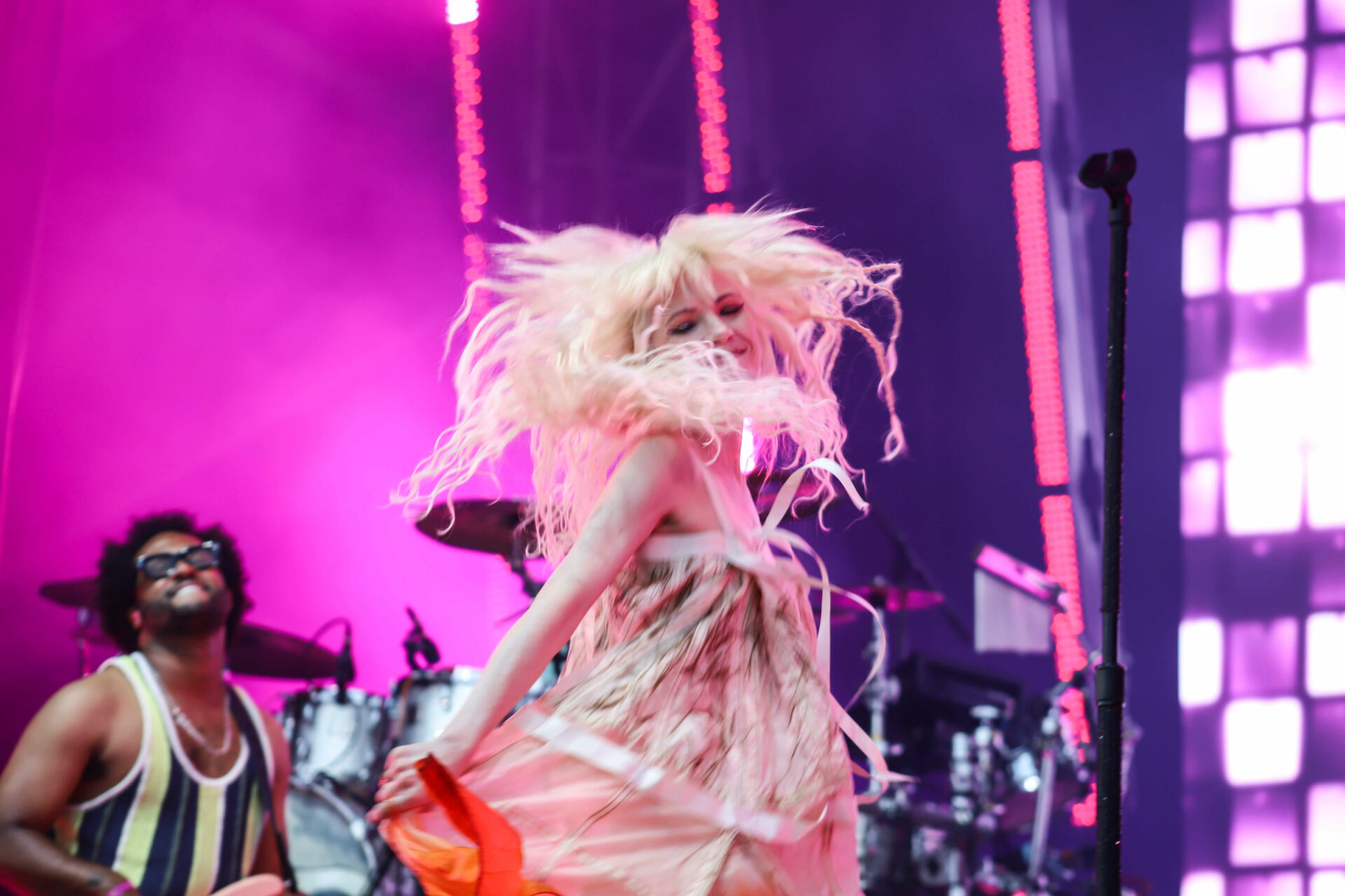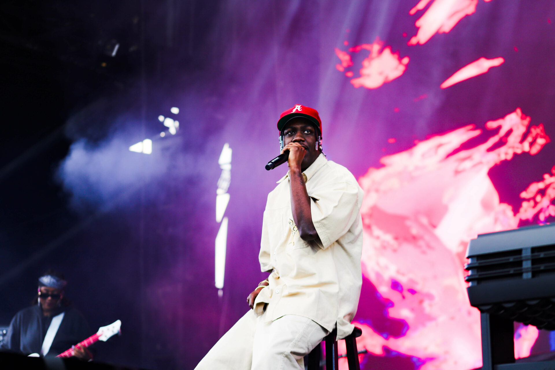Frontwoman Michelle Zauner took to the stage with a persimmon bass drum, which fit Jubilee’s aesthetic, kicking things off with “Paprika.” The addition of the gong and explosive background visuals truly elevated the live rendition. The group even performed a few cuts from their stellar debut, Soft Sounds from Another Planet, taking us back to the late 2010s. Over on the Mountain stage, Fred again.. had quite a minimalistic set with clips of different collaborators such as The Blessed Madonna appearing on the big screens, instead of bringing out surprise guests this time around.