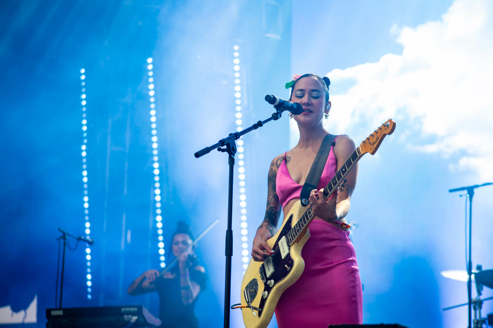 The three-day event kicked off on a high note on Friday as indie darlings Soccer Mommy and Alex G played cuts from their latest projects for the early afternoon and late crowd migrating from stage to stage, waiting for the next act. Rina Sawayama rocked the Coors Light Mountain stage with a nu-metal infused set and multiple outfit changes. The UK-based singer delivered an illuminating performance fit for a headlining slot to a crowd of day ones and many new fans. One thing to highlight about this year’s lineup is the fantastic selection of pop acts that took over the festival.