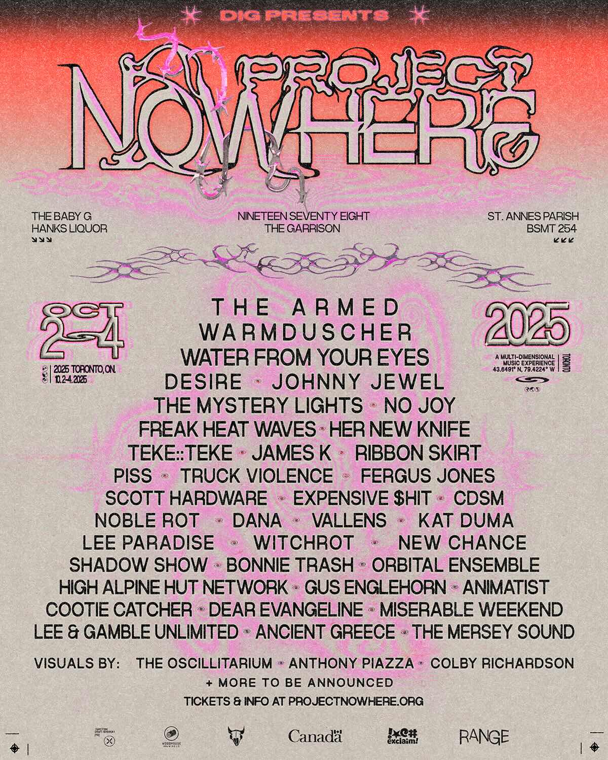 Toronto’s genre-blurring Project Nowhere Festival returns for its third edition this October 2 to 4, bringing another weekend of sonic exploration to the west end. Taking over six venues along Dundas West—including The Garrison, The Baby G, and St. Anne’s Parish—the multi-venue format invites show-hoppers to bounce between immersive performances with a 3-day pass as their golden ticket.