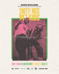 Snotty Nose Rez Kids is a Canadian hip-hop duo of Haisla (Indigenous) descent from Kitimat, BC. Rappers Yung Trybez and Young D formed the duo in 2016, releasing two albums in 2017 with their second, The Average Savage, winning them them Best Hip-Hop Artist at the Western Canadian Music Awards, a spot on 2018’s Polaris Music Prize shortlist, and a 2019 Juno Nomination for best Indigenous Music Album. In October 2021, SNRK dropped their most personal project to date, LIFE AFTER. The release landed them on the covers of RANGE Magazine, Exclaim! and The Georgia Straight. Their hit single, “Uncle Rico,” debuted on BET Jams and went into rotation on MTV. Their new album, I’M GOOD HBU? is out now.