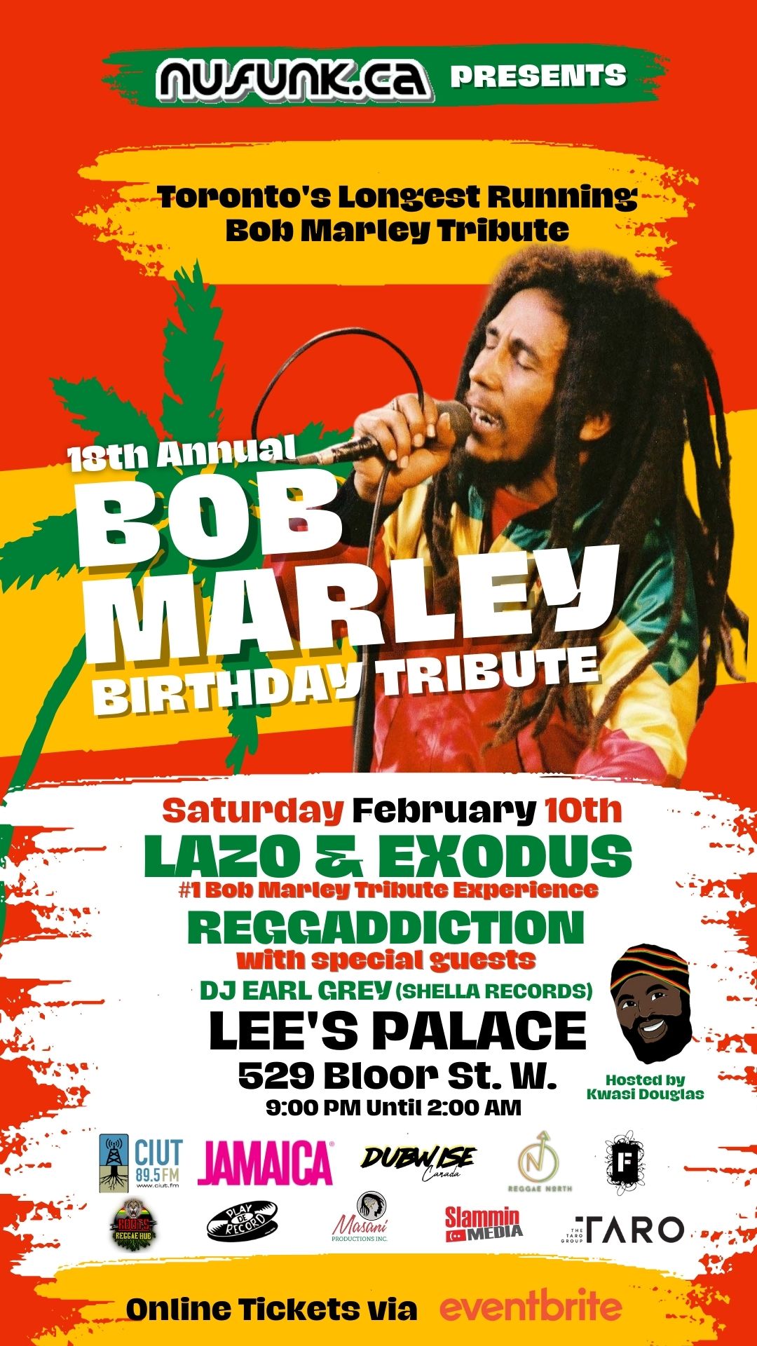Reggaddiction are playing their 18th Annual Bob Marley Birthday Tribute show, with an appearance from Lazo, at Lee’s Palace in Toronto on Feb. 10, 2024.