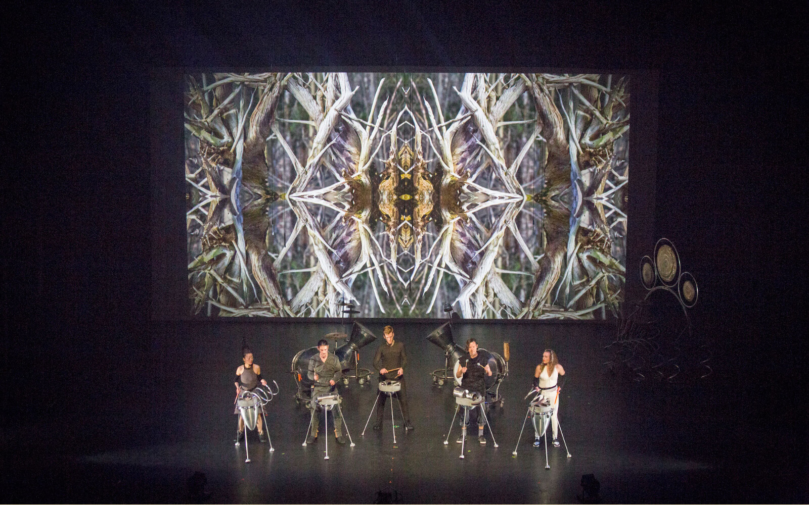 Scrap Arts Music’s live show features more than 145 mobile sculptural instruments. “This is quite a physical show. There’s a lot of pumpin’, jumpin’ choreography,” Kozak says. He likens Murdy to an architect who envisions how all the pieces will fit together. “A lot of consideration goes into how it looks for the ensemble to perform a piece and then how they transition from one piece from the next,” she explains. For the shows supporting Children of Metropolis, however, the ensemble will perform on sculptural instruments in front of a cyclorama onto which they will project their film.