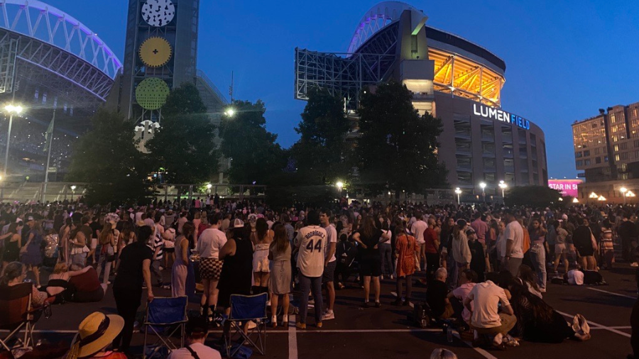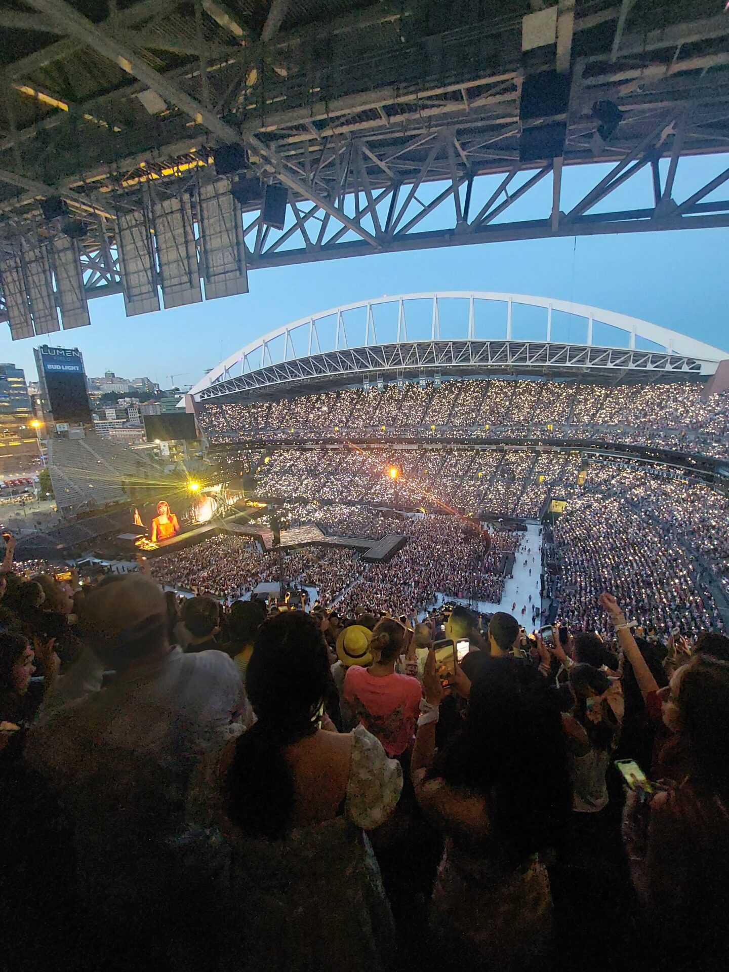 Taking place on the same weekend that the Toronto Blue Jays – a team with a huge handful of fans from all over Canada – faced off against the local Seattle Mariners and music festival Capitol Hill Block Party kicked off on the other side of town, border wait times extended to five hours and prompted some cars in our group to leave as early as 4:30 a.m. While actually in the city, a convergence of fans clogged the streets as Swifties marched towards the arena at the same time baseball enthusiasts were marching the other way in a mass exodus. Once inside, looking down at the sea of fans waiting to get into the building was a staggering sight to behold.