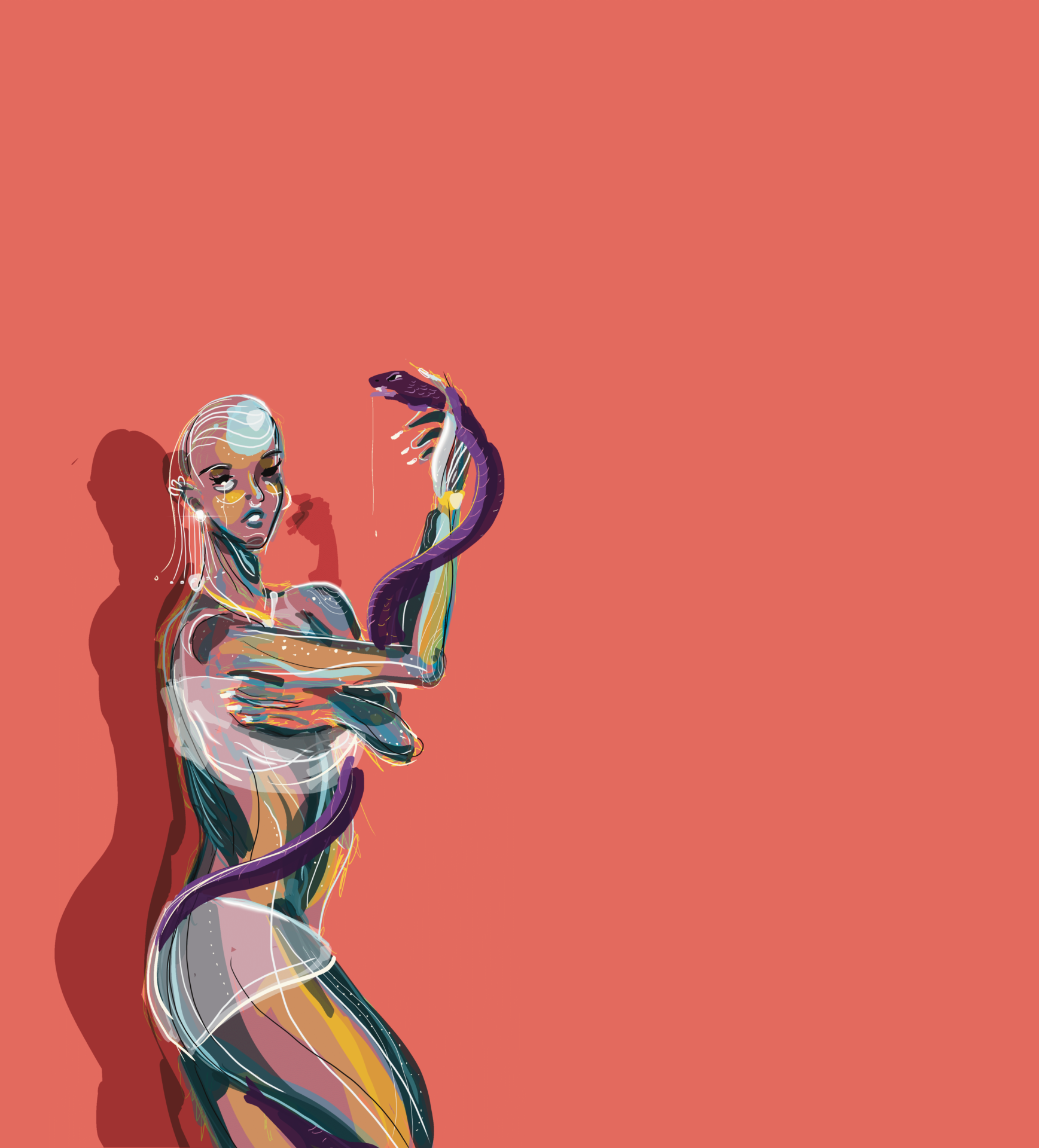 Commissioned by the Art Commons TD Incubator program, Contra’s role is to curate different emerging BIPOC artists with various disciplines within Calgary— creating stories and sharing a specific message through their art for each cabaret. As the creative director, Contra is responsible for setting the tone, theme, and prompt. “We wanted to feel immersive and create all the visuals for everyone. We want it to be a one-hour compact show with four artists going back and forth, having conversations about each prompt and topic.”