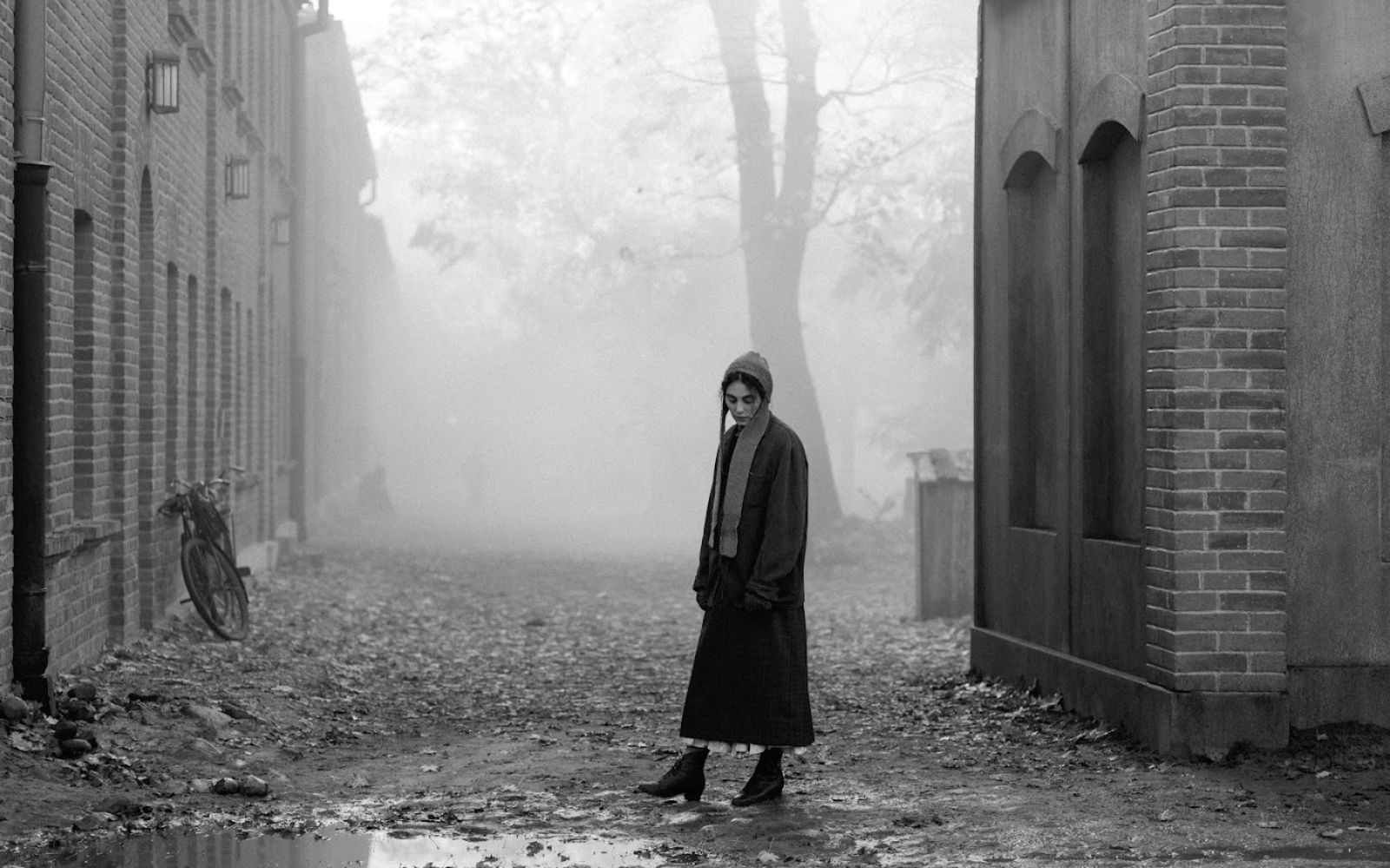 While modern black-and-white cinematography can often feel like a gimmick or a stylistic crutch, it actively informs the story in von Horn’s hands. In fact, for von Horn, it is the story. He tells RANGE that The Girl with the Needle “felt like a story pretty early on that is justified to be in black and white.” The sentiment rings true in the film’s startling first frames—an abstract montage of distorted female faces amid a pitch-black void. “We thought about it as a fairytale for grownups; the black and white helps to create that atmosphere.”