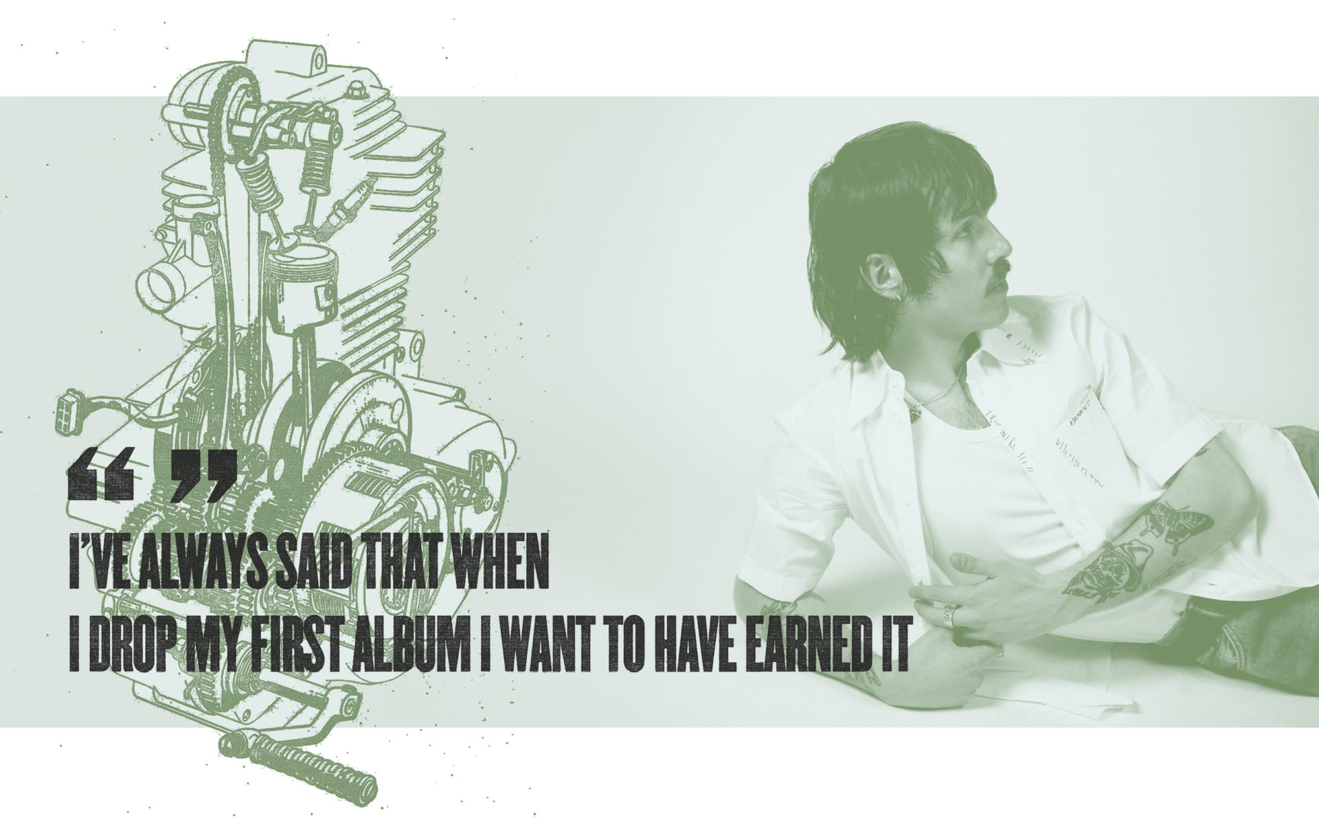 Before we even sit down to chat, he cracks a smile and tells me that he wants to start lying during interviews just for the hell of it. It’s at this moment I can tell this conversation is going to be just like his music—tongue-in-cheek, sharp-edged, and disarmingly honest.
